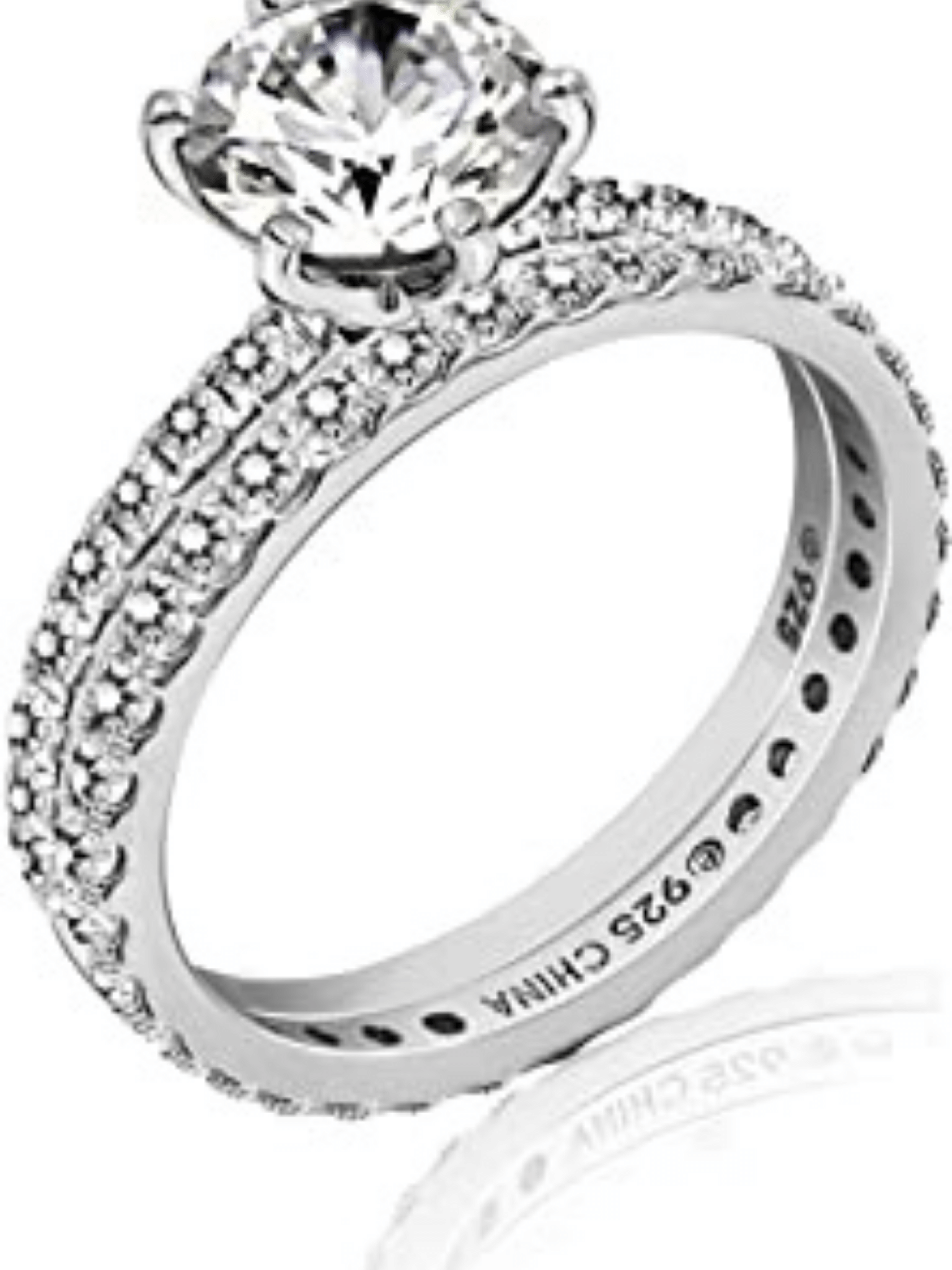 ring with round brilliant cut Infinite Elements Cubic Zirconia centerpiece and half-length inset Zirconia and full eternity wedding band with pave-set Zirconia rounds